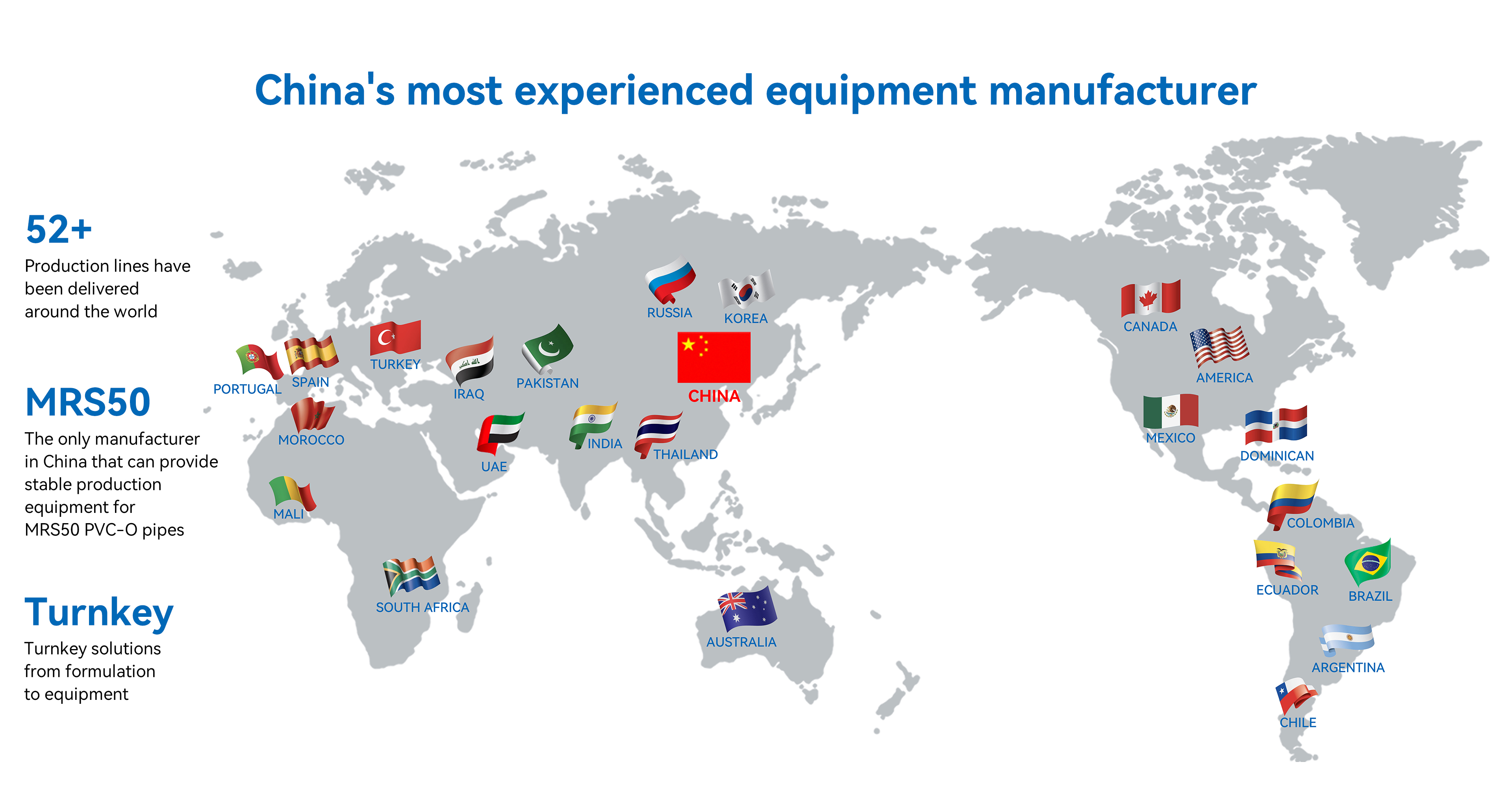 The OPVC pipe production line utilizes biaxial stretching technology to produce pipes with superior low-temperature resistance, high toughness, and 15-20% material savings versus conventional methods. Its high-efficiency extrusion system increases output by 25% while ensuring consistent quality. The precision-controlled process guarantees uniform wall thickness and optimal molecular orientation. Ideal for demanding applications, the line delivers high-performance pipes with reduced production time and resource consumption.