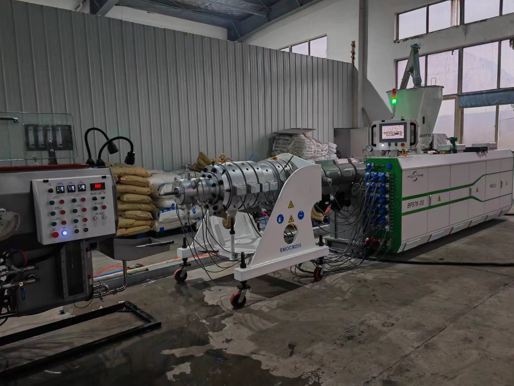 On January 13, 2023, Polytime Machinery carried out the first test of 315mm PVC-O pipe line exported to Iraq. The whole process went smoothly as always. The whole production line was adjusted in place once the machine was started, which was highly recognized by the customer.